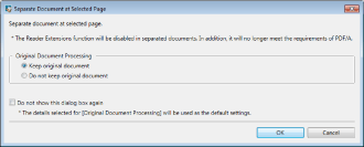 From now on, the [Separate Document at Selected Page] dialog box is not displayed. The processing mode selected in [Original Document Processing] will be applied to the original document.