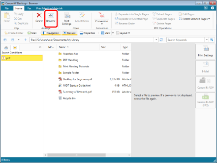 Select a search condition name in the [Search Conditions] list in the Navigation Window.