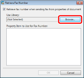 Fax numbers can be retrieved automatically only from documents stored in a library that you have selected in the [Retrieve Fax Number] dialog box. Fax numbers cannot be retrieved from documents in other libraries, even if fax numbers are set in their properties.