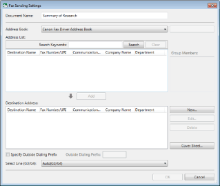 If one of the following operations is performed, the [Fax Sending Settings] dialog box is displayed. In this case, proceed to step 12.
