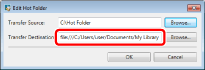 A folder already registered as the transfer source of Hot Folder or My Tray