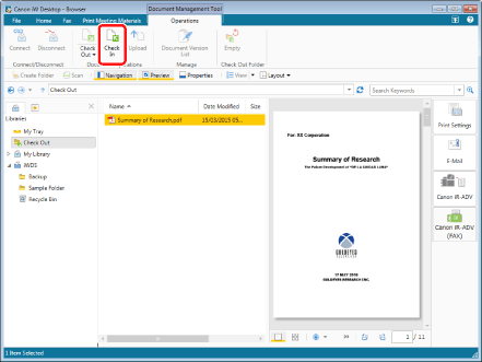 Or, right-click and select [Check In Document].