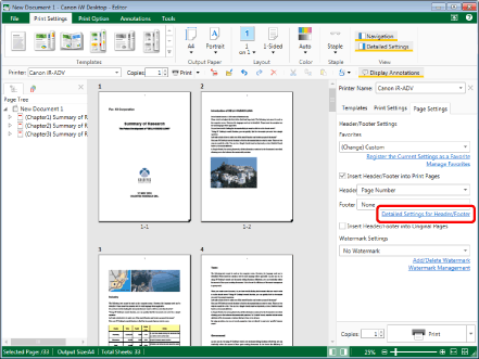 The operation procedure is the same for [Insert Header/Footer into Print Pages] and [Insert Header/Footer into Original Pages].