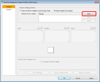 When specifying detailed footer settings, detailed footer settings are displayed. The settings are the same as those for the header.