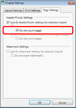In addition, you can select whether to count the page numbers of chapters for which you do not configure the header/footer settings.
