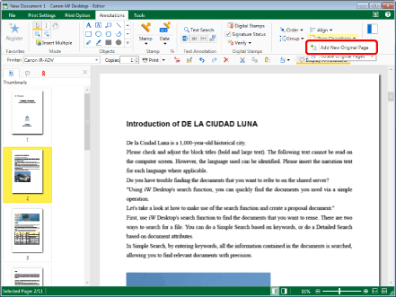 (Page Operations) on the ribbon and select [Add New Original Page].