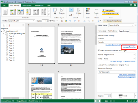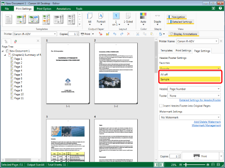(Favorites) on the ribbon and select [All off].If you edit the header/footer settings after selecting a favorite, the [Favorites] pull-down list in the Details Window > [Page Settings] tab > [Header/Footer Settings] changes to [(Change) Custom].