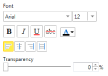 The slider position and the numeric value indicate the degree of transparency of the text. To change the degree of transparency, move the slider to the left or right, or enter a numeric value. You can also use