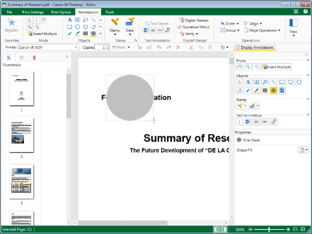 Since the information below the inserted mask (oval) is only hidden, it can be found by searching, etc. To completely erase the masked information, perform redaction or convert the document to an image. For information on performing these operations, see the following.