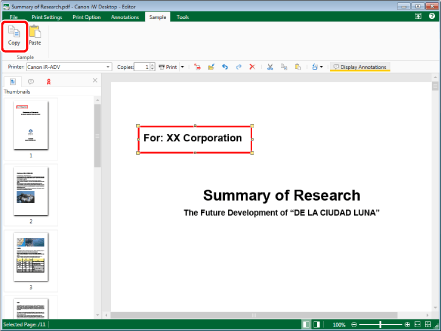 If you perform the paste operation when the annotation to be copied/cut is deselected, the copied/cut text string is pasted as a