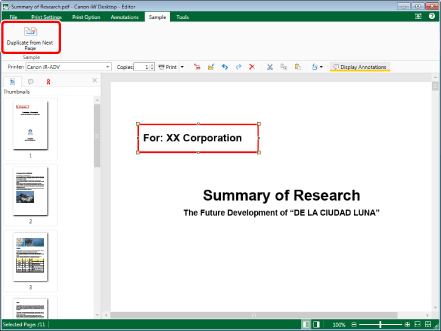 The annotation you selected is inserted into the same position on each page, using the upper left corner of the page as a reference.