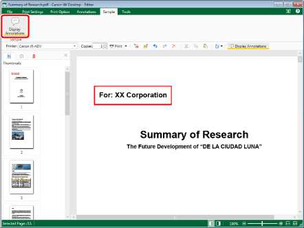 If the [Display print/send fax dialog] check box is deselected in [System Settings], a confirmation message is displayed if you perform one of the following operations when annotations are hidden. To print annotations, click [Print with annotations].