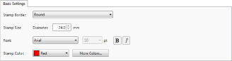 Specify the margin in the stamp border. To change the margin, move the slider to the left or right, or enter a numeric value between -13 mm and 13 mm. You can also use