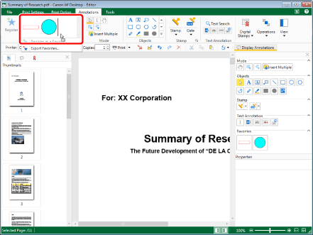 You can delete, rename, change the display order of, and export the favorite stamps of annotations registered in Favorites.
