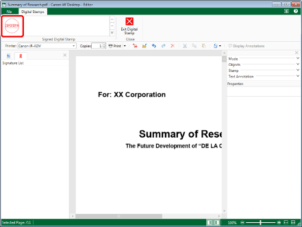 The [Annotation List] tab on the Navigation Window is hidden while the Digital Stamps Mode is running.