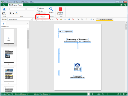 When operating on multiple images and text (objects) simultaneously in the Edit Original Pages Mode of Desktop Editor, grouping them enables you to conveniently select them all at once.