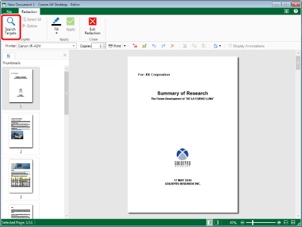 (Select All) displayed on the toolbar to perform the same operation. If tool buttons are not displayed on the toolbar of Desktop Editor, see the following to display them.For more information on applying redactions, see the following.