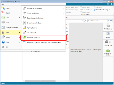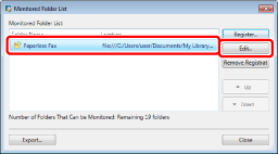 You can also display the [Monitored Folder List] dialog box to cancel monitoring target folders. For details on canceling monitoring target folders, see the following.
