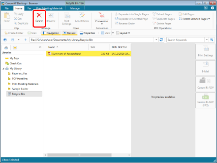 The Recycle Bin cannot be used for a Document Server Library unless you have edit permission or higher.