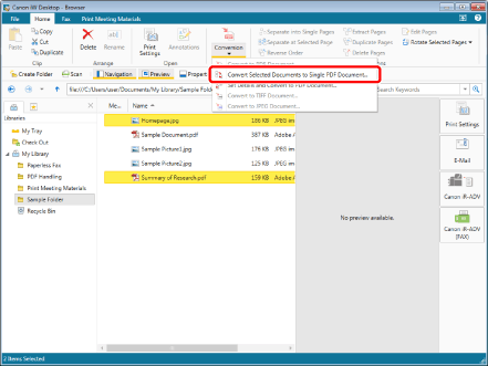 (Conversion) on the ribbon, and select [Convert Selected Documents to Single PDF Document].