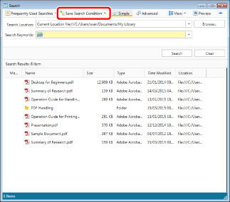 (Save Search Condition) on the Search Screen, and select [Organize Search Conditions].