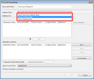 To retrieve addresses for the IP fax function from the address book of an imageRUNNER ADVANCE device, version 3.1.0 or later of Desktop Communicator must be installed in the imageRUNNER ADVANCE device. With version 3.0.0 or earlier, only the destination names are retrieved.