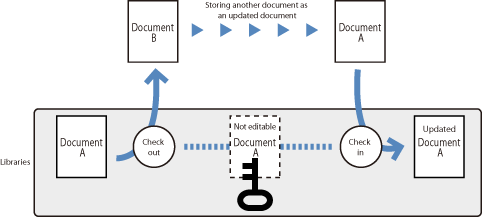 Normally, a user first check out a document in a library to update it, and then download the checked out document to perform edit operation. These procedures prevent other users from performing another editing operation for the same document while the original user is editing it. Other users can edit the document only after the document is checked in or the check out is canceled.