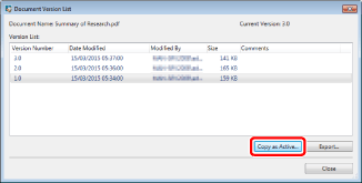 When you display the version list of a checked out document and select the newest and second newest version numbers, you cannot use [Copy as Active].