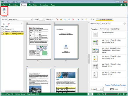 This operation can also be performed with the tool buttons on the toolbar. If tool buttons are not displayed on the toolbar of Desktop Editor, see the following to display them.