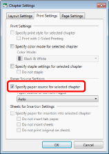 You can configure the paper source settings for the specified chapter differently from the entire document.