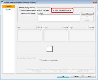 When specifying detailed footer settings, detailed footer settings are displayed. The settings are the same as those for the header.