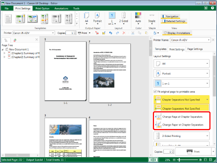 When not specifying the chapter separation settings, select [Chapter Separators Not Specified] in [Layout Settings] on the [Print Settings] tab on the Details Window. Or, click