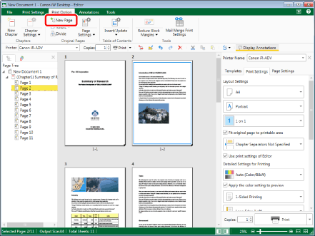 If you selected a chapter as the position to insert the new page, the new page is added as the first page of the chapter, with the same paper size/orientation as the first page of the selected chapter. If no pages exist in the selected chapter, a new page is added with the same paper size/orientation as the output paper size/orientation settings set for the selected chapter.