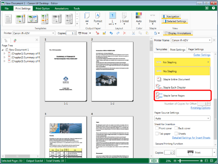 (Staple) on the ribbon and select [Staple Same Pages Using Eco Function].