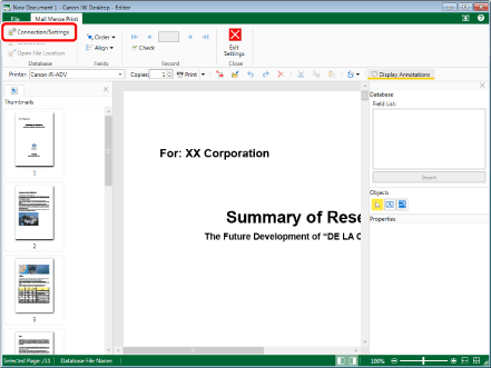 When you connect to the database, the name of the connected database file is displayed on the status bar.