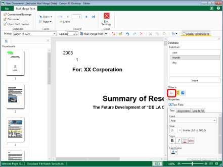 Move the mouse pointer to the Mail Merge field that you want to change the overlapping order of on the Work Window, and click the field when the shape of the mouse pointer changes to