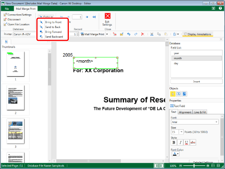[Bring to Front]: The selected Mail Merge field is brought to the front.