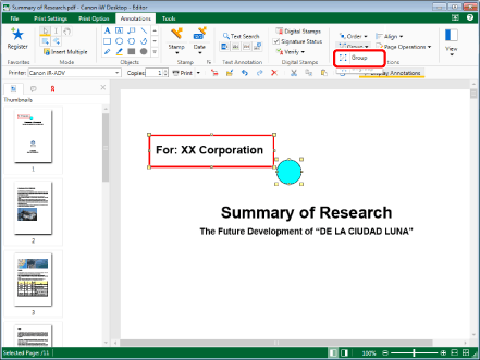 You can create groups of groups, or group a group with a single annotation. When grouping two groups, their previous groupings are undone and they are regrouped as a single group.