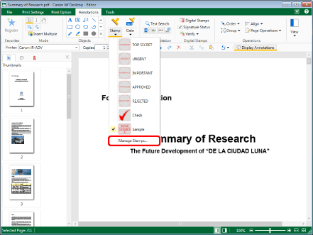 (Stamp) on the ribbon, and select [Manage Stamps].