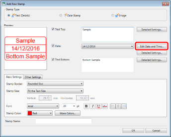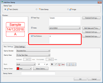 If you do not enter a name in [Stamp Name], a name is automatically set from the text entered in [Text Top]/[Text Bottom].