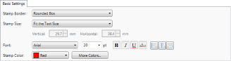 The stamp size is automatically set according to the font size of the text. The stamp size is displayed below [Stamp Size] but cannot be edited.