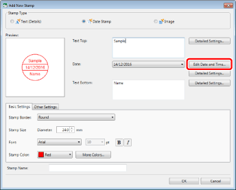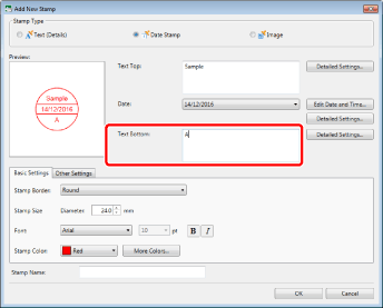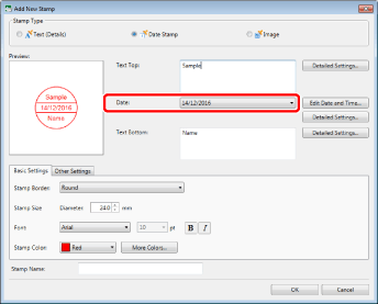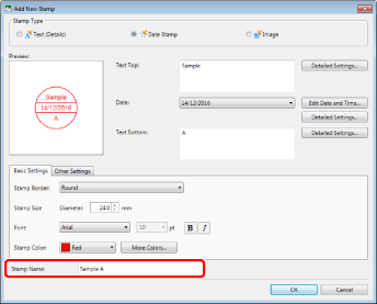 If you do not enter a name in [Stamp Name], a name is automatically set from the text entered in [Text Top]/[Text Bottom].