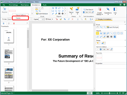 You can delete, rename, change the display order of, and export the favorite stamps of annotations registered in Favorites.