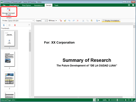 The stamped images that were automatically registered during the installation cannot be edited. However, the stamped images that are duplicated from these stamped images can be edited. For information on how to duplicate stamped images, see the following.