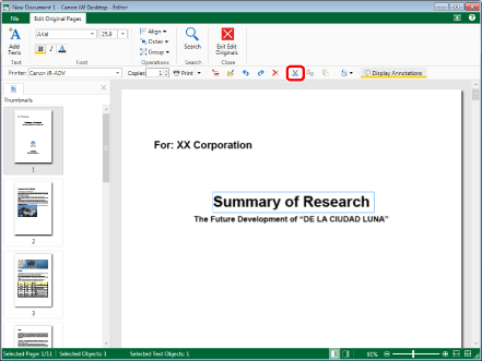 Objects cut in the Edit Original Pages Mode can only be pasted to the document they were cut from in the Edit Original Pages Mode. If the cut objects are text objects, their strings can also be pasted to documents created in another application. In this case, the attribute information of the strings is discarded.