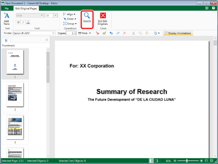 This operation can also be performed with the tool buttons on the toolbar. If tool buttons are not displayed on the toolbar of Desktop Editor, see the following to display them.