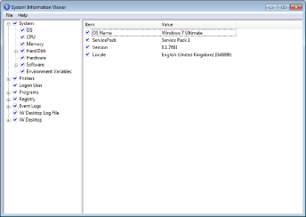 Displays the environment information items that are retrieved by System Information Viewer in a tree view.
