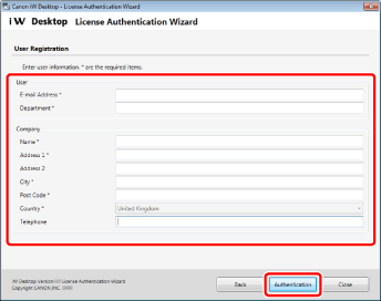 Enter the user information, and click [Authentication].