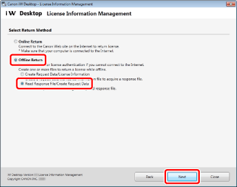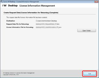 Send the Request Data File for returning (*.bin) to your Canon dealer. The procedure for returning the license is complete when the returned license is processed.
