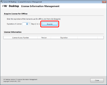 For Windows 10, select the [Start] menu > [All apps] > [Canon iW] > [iW Desktop License Information Management].